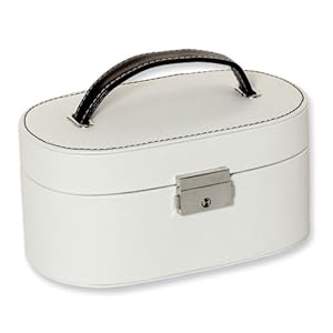 Product Description : White with black stitching Oval Jewelry CaseWeight: 1 GMLength: 7 INWidth: 4 INHeight: 3.5 INUptown collection